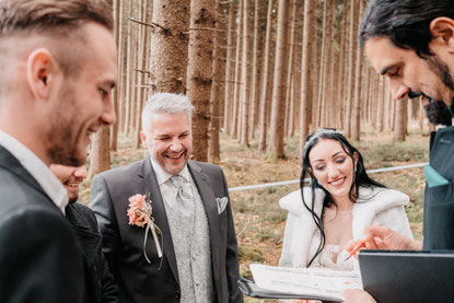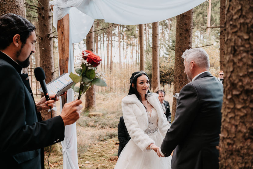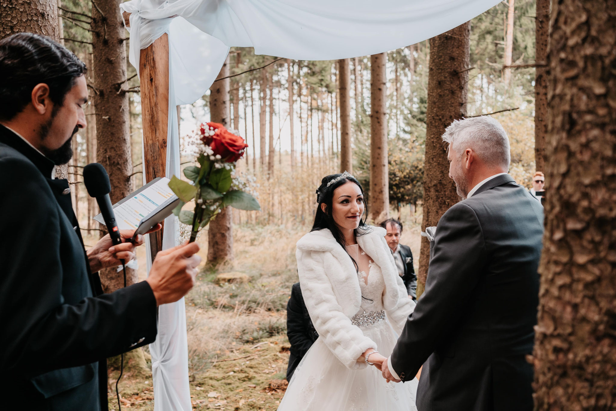 Bei deiner Hochzeitsrede ist uns bewusst geworden, dass du unsere Liebe zum Wald genauso eingebaut hast, wie wir uns das vorgestellt haben. Besonders gut gefallen hat uns deine abwechslungsreiche Traurede. Die ständige Abwechslung unserer Geschichten mit Humor, Liebe, Romantik und den christlichen Momente waren für uns eine Achterbahnfahrt der Emotionen, wie ich sie in meinen 40 Lebensjahren nur sehr selten erfahren habe.